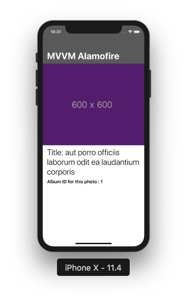 The view represent how the data will rendered to the view. The storyboard file for this case is responsible for this layer. Here, I create simple view that holds UIImageView and two UILabel to show it to the user. Also, hook up it to the ViewController so we can interact with the view components via code. the ViewController.swift file is also a View, just ignore the Controller word.